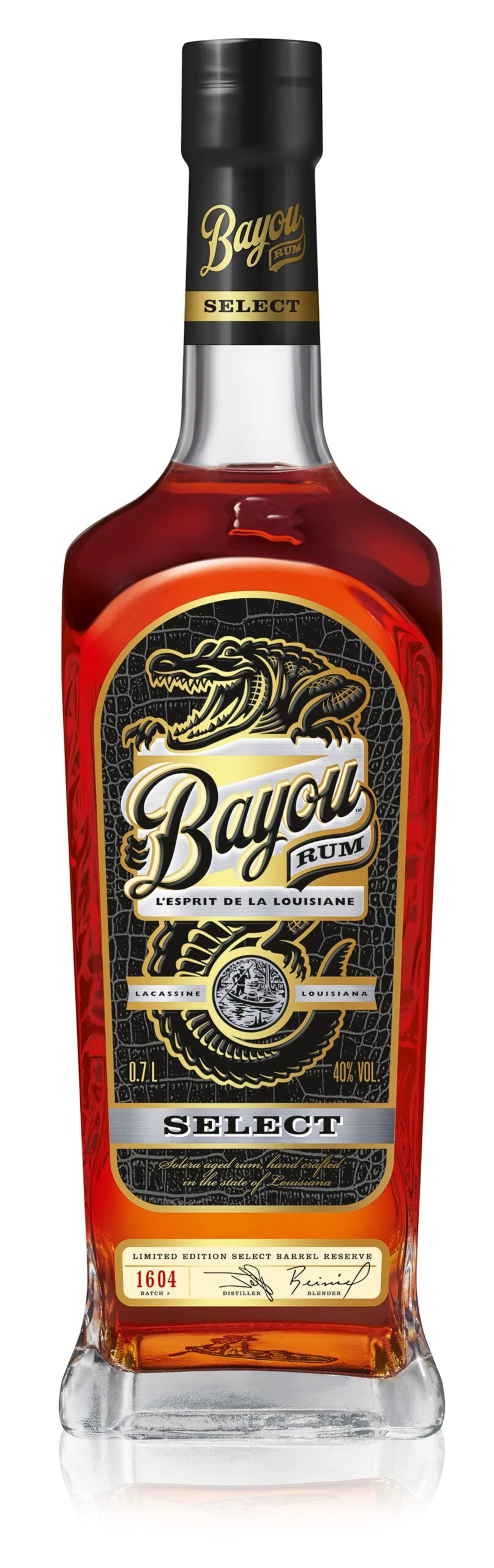 Bayou Select Rum 70cl is the gem of Bayou. For 300 years, the Bayou wetlands of Southern Louisiana have been sugarcane country. At the Bayou distillery, they handcraft rum in small copper pot stills from a unique blend of local molasses and fresh raw sugar. The result is a range of Premium Rums from Louisiana, the richest of which is Bayou Select, carefully matured by master blender Reiniel Vicente. With a combination of Bourbon and Bordeaux wine casks, he uses the Solera aging process to top up the evaporation from our oldest barrels with younger rums, until the perfect balance of smoothness and character is achieved.