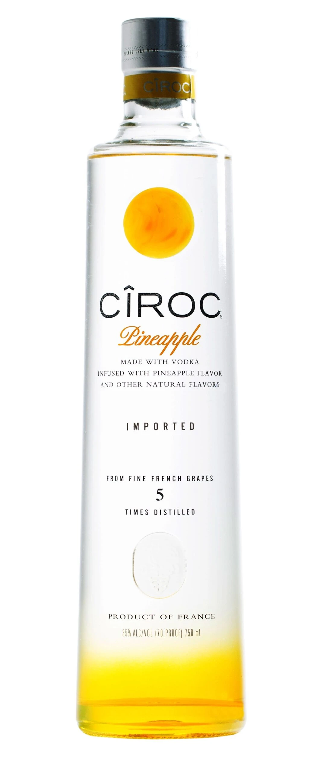 CIROC Pineapple is a rich tasting spirit made with Vodka distilled five times from fine french grapes, finished in a tailor-made copper pot still in Southern France.