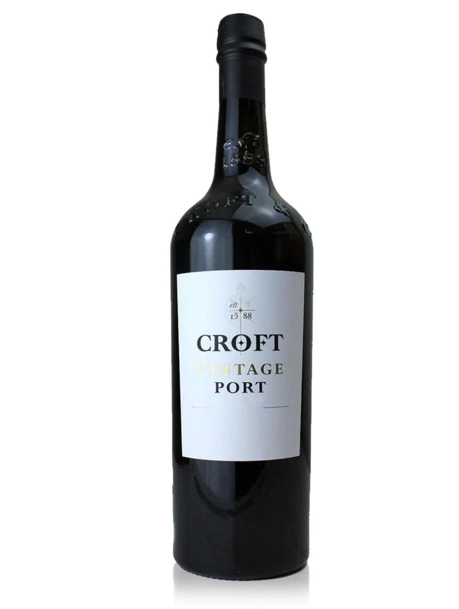 Croft Vintage Port from Douro Portugal is a vibrant ruby colour turning to brick on the rim. Intense, rich, jammy damson and black cherry fruit aromas. Good depth and complexity on the nose, with additional notes of spice and leather. A finely structured palate with great balance – giving way to deep chocolate flavours and hints of eucalyptus.