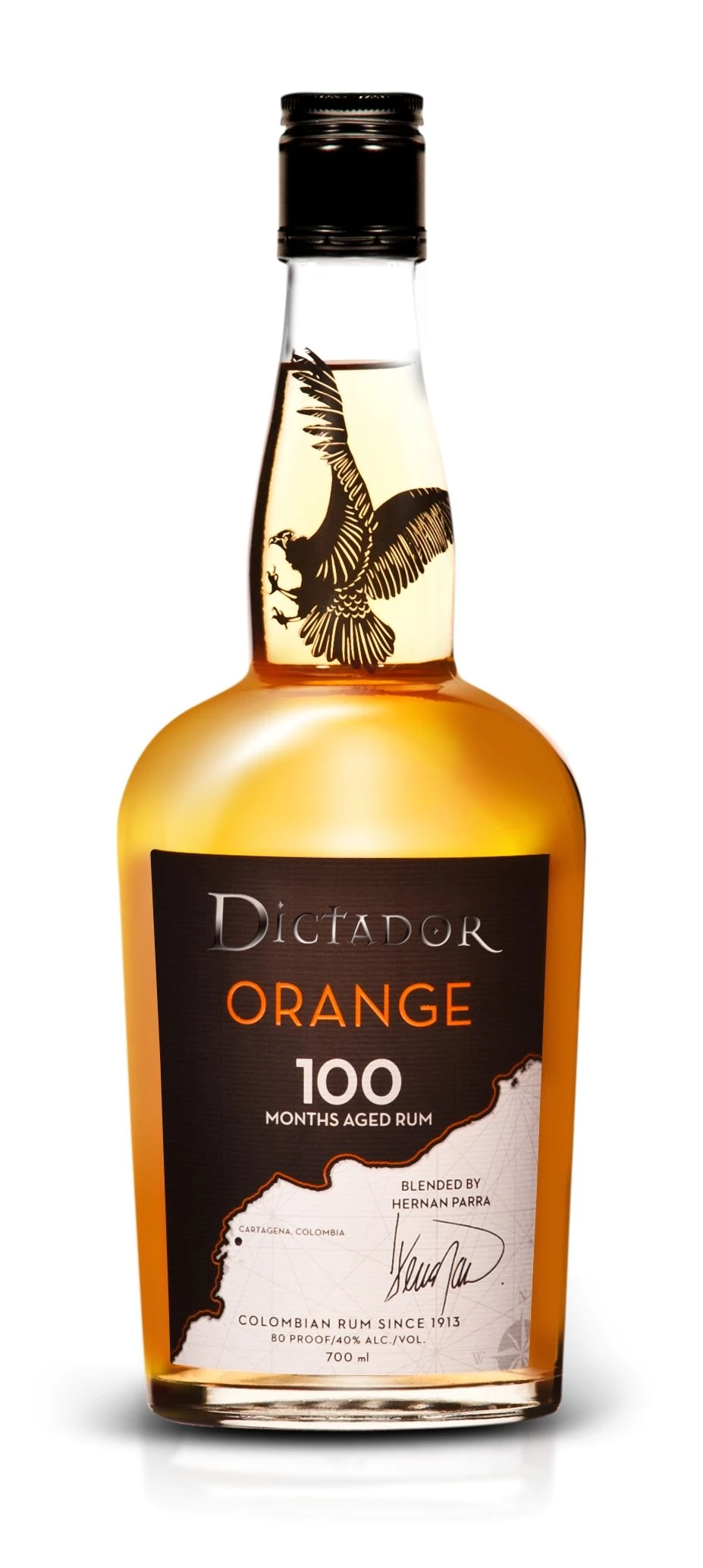 Dictador Orange 100 month aged rum is the ideal match for those looking for a fresh, zesty palate with their rum. After continuous column still distillation and ageing in ex-bourbon oak casks, this full flavoured rum is macerated with fresh Colombian orange peel, creating a subtle yet deep flavour.