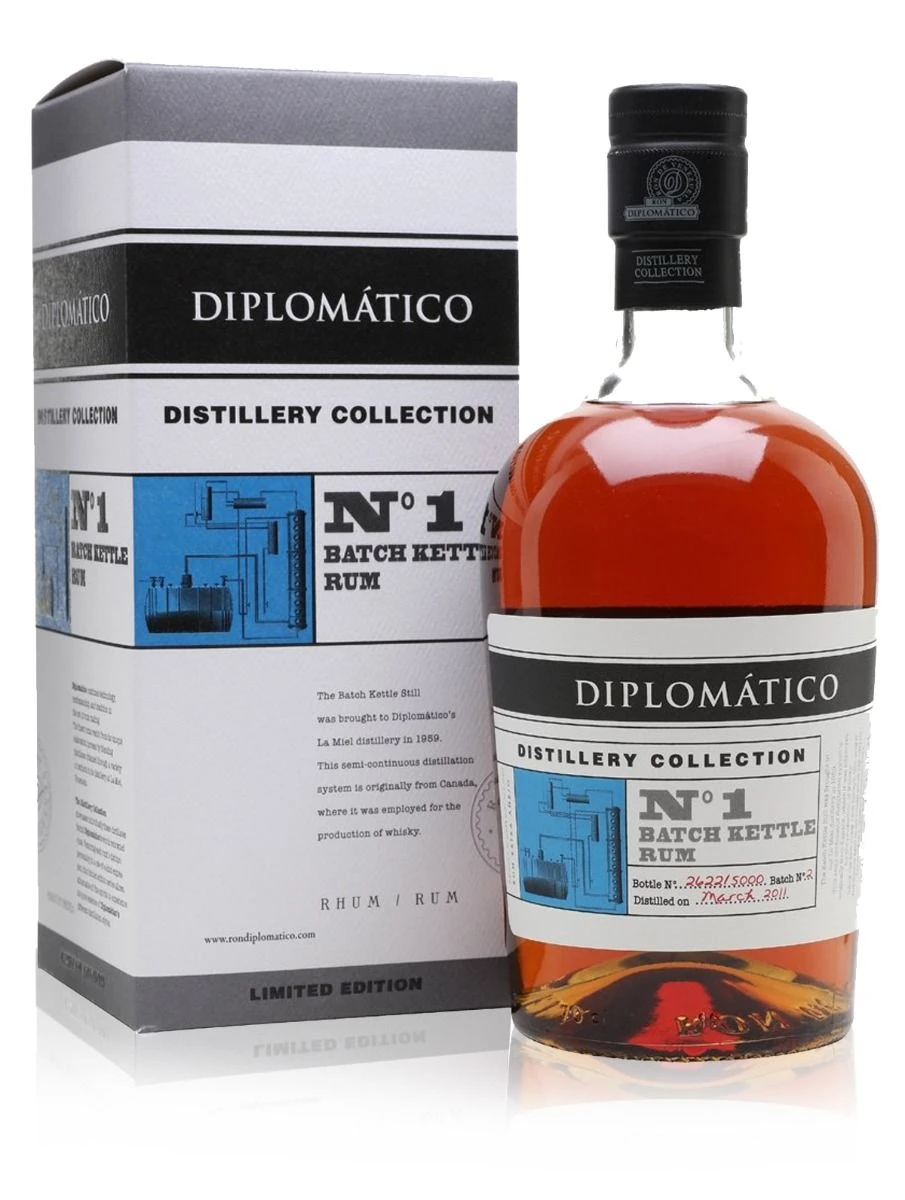 Diplomatico No.1 Batch Kettle Rum is part of the Limited Edition Distillery Collection from Diplomatico in Venezuela. The Batch Kettle Still was brought to Diplomatico”s La Miel Distillery in 1959, this discontinuous distillation system is originally from Canada where it was employed for the production of whisky. The Batch Kettle Rum is mainly produced from sugar cane honeys and aged in American white oak barrels that previously served to age bourbon and whisky for 6 years.