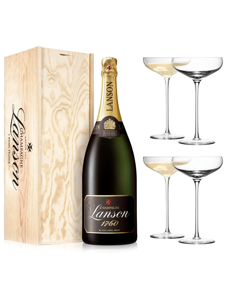 Lanson Black Label Champagne Magnum 150cl & 4 LSA Champagne Saucers Includes a Gift Boxed Lanson Black Label Champagne Magnum 150cl & 4 Gift Boxed LSA Champagne Saucers. Lanson is a truly uplifting non-vintage Brut Champagne, with an exceptional purity of fruit. For 250 years Lanson avoid malolactic fermentation – a decision that ensures the champagne preserves a naturally crisp and fresh taste and at least 3 years’ cellar ageing.