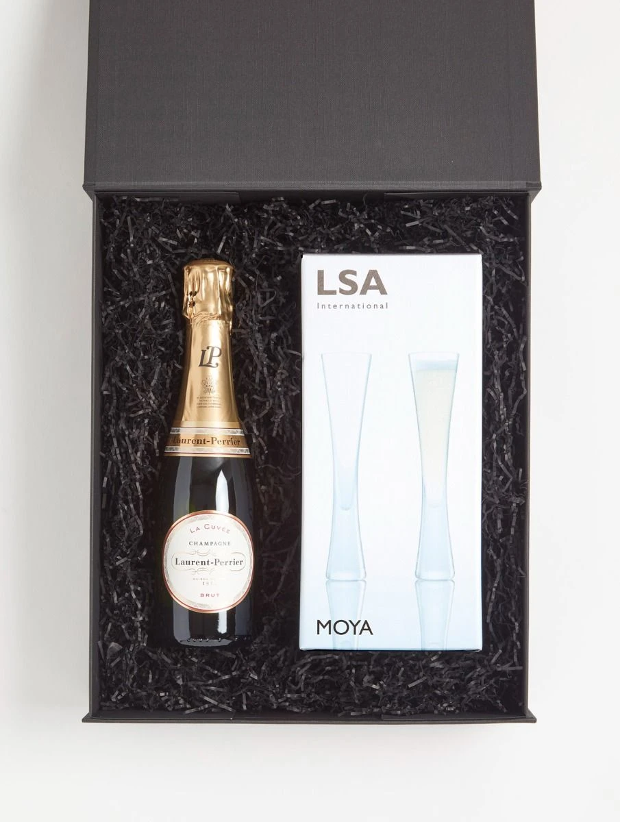 Presented in The Champagne Company luxury double gift box – our black branded gift boxes are luxuriously textured with beautiful silver foiled lettering and a sleek ribbon tab opening so to adequately match the outstanding quality of the Champagne and gifts inside.