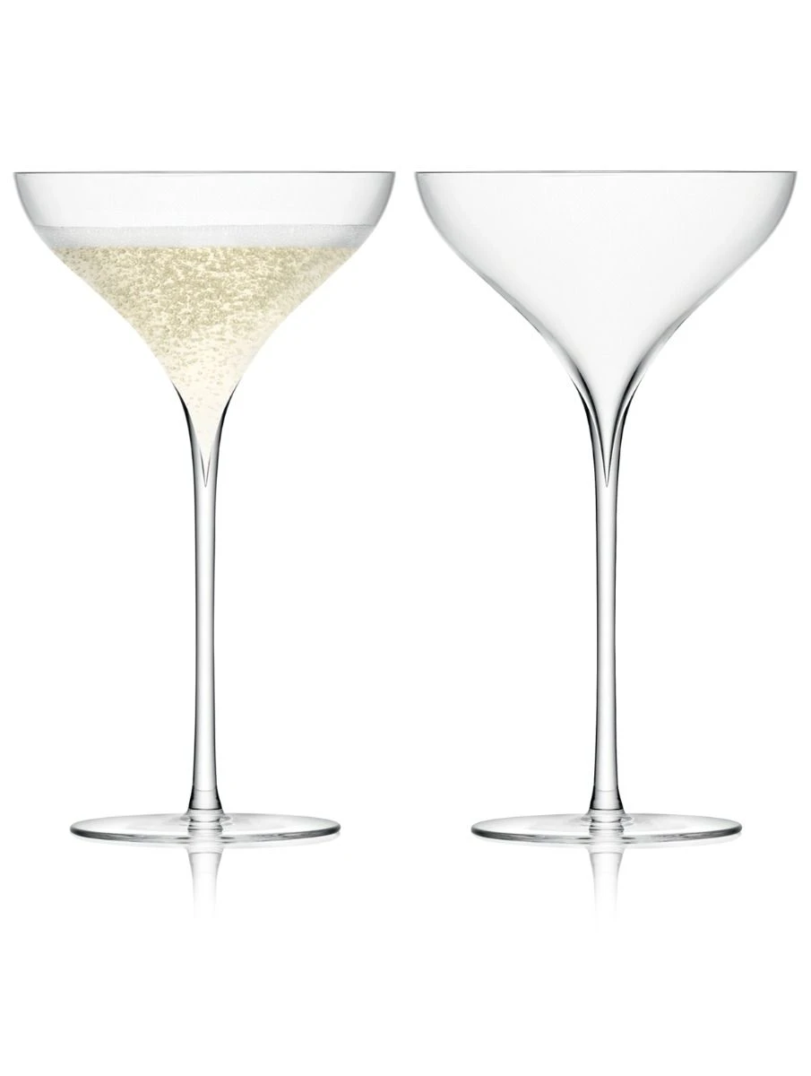 LSA Savoy Champagne Saucers (Set of 2 glasses) are elegant are graceful glasses for the most special occasions, in a vintage 1950’s style glamour. Savoy Champagne Saucers are also available embellished with hand painted metallic rims in gold or platinum. With a teardrop effect into the stem, the Champagne saucers are 250ml in size. Savoy Champagne saucers are presented in a LSA contemporary gift box.