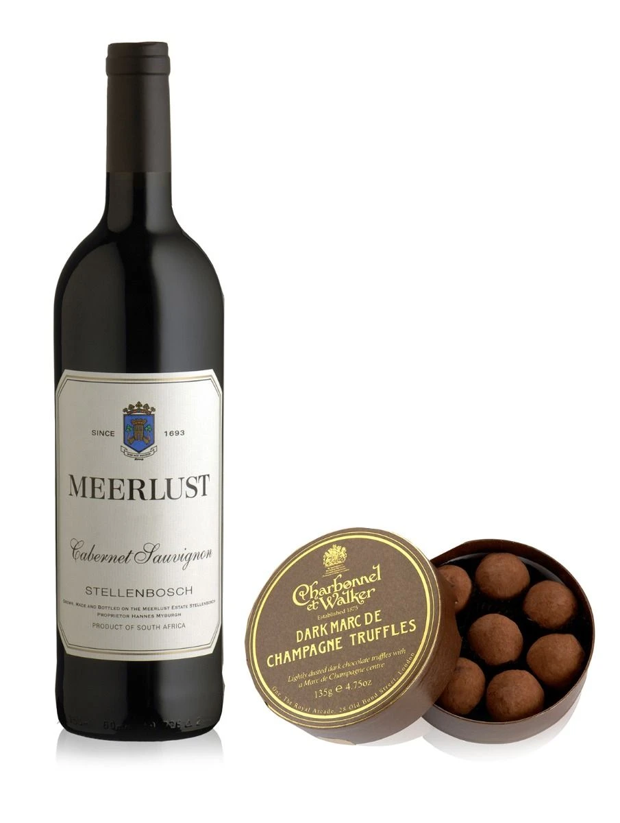 Charbonnel & Walker Truffles – a perfect match for fine red wines. Dark Marc de Champagne Truffles are lightly dusted with cocoa with a delicious Champagne truffle centre – mixed with a little rum. Marc de champagne is a clear liquor distilled from the pomace of pressed champagne grapes and is part of the secret ingredient of the delicate scent and unique flavour of Charbonnel & Walker’s creamy Marc de Champagne truffles.