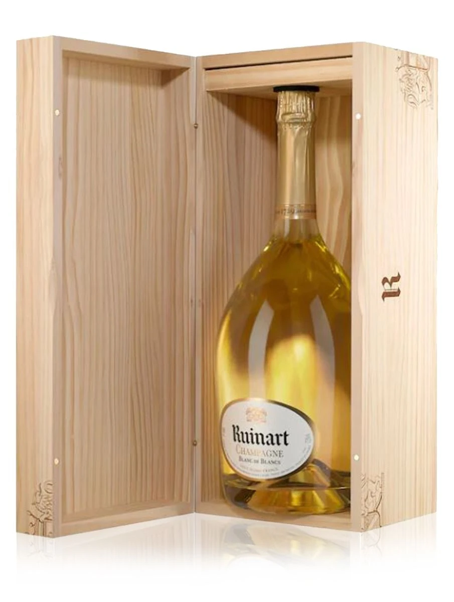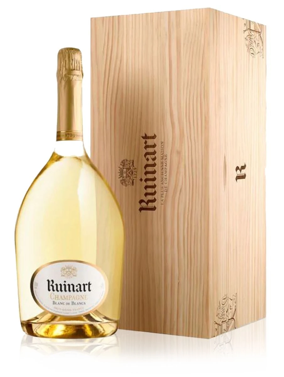 Ruinart Blanc de Blancs Jeroboam of Champagne embodies purity of the Chardonnay grapes from which it is made exclusively. Made primarily with Premiers Crus from the Côte des Blancs and Montagne de Reims terroirs, it is intensely aromatic.