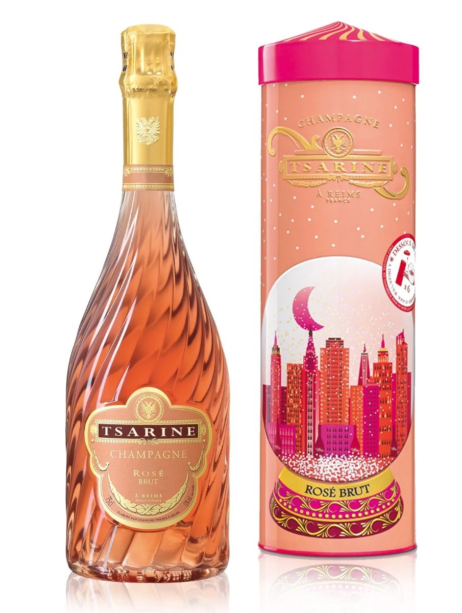 Tsarine Rosé Champagne City Lights Gift Tin NV 75cl presented in a limited edition City Lights Tin Gift Box with 6 branded Tsarine Champagne flute coasters inside.
